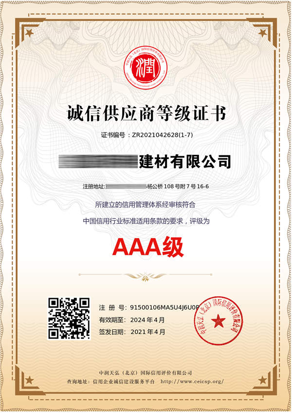 AAA企業信用評級、體系認證、榮譽證書提供 電話:400 880 5176 |